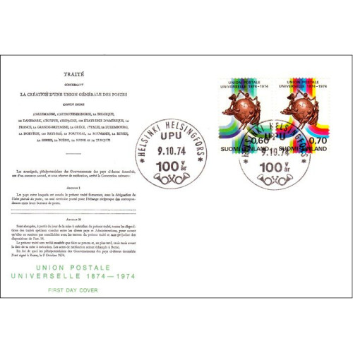 fdc Finlanda 1974 - Centenarul UPU - b