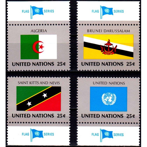 Natiunile Unite 1989 - Drapele - Algeria, Brunei, St Kitts si Nevis, Natiunile Unite - eng - serie v