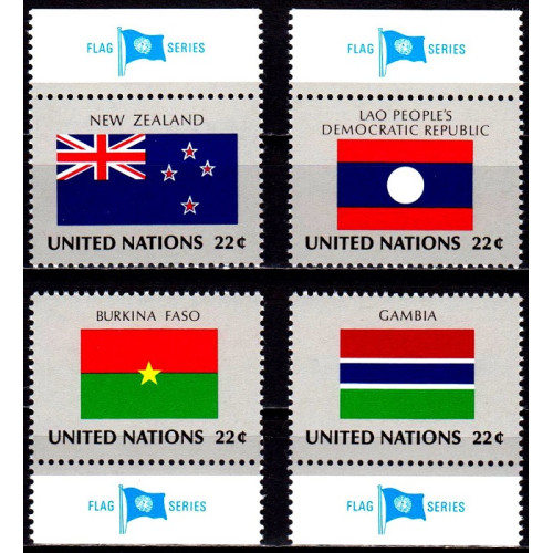 Natiunile Unite 1986 - Drapele - Noua Zeelanda, Laos, Burkina Faso, Gambia - eng - serie v