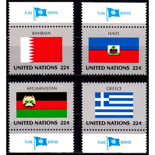 Natiunile Unite 1987 - Drapele - Bahrain, Haiti, Afganistan, Grecia - eng - serie v